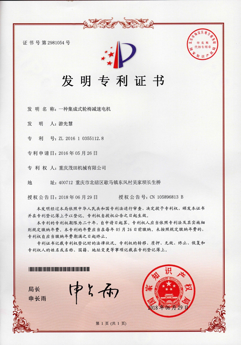 重慶茂田機(jī)械有限公司是國(guó)家級(jí)小巨人企業(yè)、國(guó)家高新技術(shù)企業(yè)、重慶市專精特新企業(yè)、重慶市知識(shí)產(chǎn)權(quán)優(yōu)勢(shì)企業(yè),致力于現(xiàn)代化山地農(nóng)業(yè)機(jī)械、各類非標(biāo)減速電機(jī)及其控制系統(tǒng)的研發(fā)、生產(chǎn)、銷售。擁有重慶市市級(jí)研發(fā)平臺(tái)1個(gè) 目前研發(fā)、生產(chǎn)、銷售產(chǎn)品廣泛應(yīng)用于農(nóng)業(yè)機(jī)械、醫(yī)療康復(fù)設(shè)備、交通代步工具、智能搬運(yùn)設(shè)備、以及機(jī)器人動(dòng)力系統(tǒng)等領(lǐng)域。我們的產(chǎn)品具有完整的自主知識(shí)產(chǎn)權(quán),擁有多項(xiàng)專利技術(shù)及“重慶